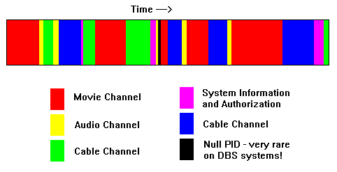 There are typically four types of PIDs used by satellite receivers. The VPID is the PID for the video stream and the APID is the audio stream. Occasionally, a PCR PID (program clock reference) is used to synchronize the video and audio packets, however, most of the time, this data is embedded into the video stream. The forth data PID is used for data such as the program guide, information about other frequencies that make up the total package etc. This data is called the System Information and uses a PID value of between 0000 and 0014 (hex).