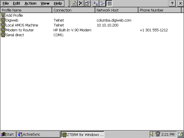 Also please keep in mind power usage. If ZTERM has an open connection to any device, the HPC will not power off. This is a limitation on Windows CE when a socket (a telnet connection for example) is open. We force the same restriction in ZTERM for serial ports and modems to maintain the same operation as with telnet and also because powering off ZTERM when connected to a serial port or modem may cause some undesired behaviour when the device is powered back on.