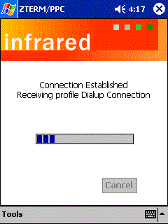 ZTERM for Pocket PC supports multiple profiles, each maintaining it's own settings and options. Once you've got your profile setup for access to your host, you can share it with other ZTERM users using the Infrared port on your Pocket PC. Profiles can even be sent to Handheld PC users running ZTERM for Windows CE.