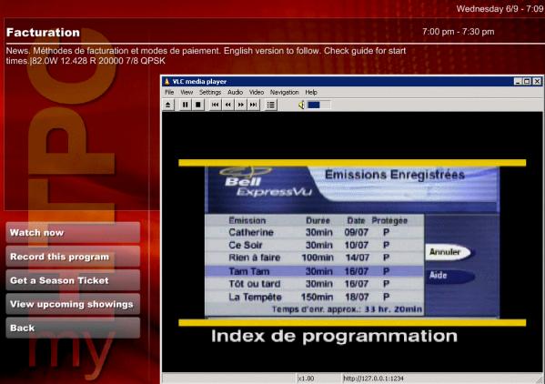 - When you select a program in myHTPC, and press watch now,