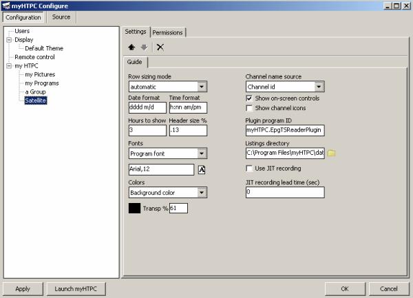 click on myHTPC, and then click on Settings. From the dropdown