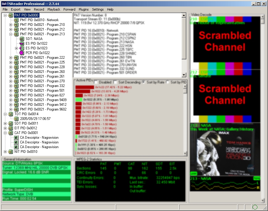 The tree view shows the MPEG-2, DVB, ASTC or Digicipher II tables.