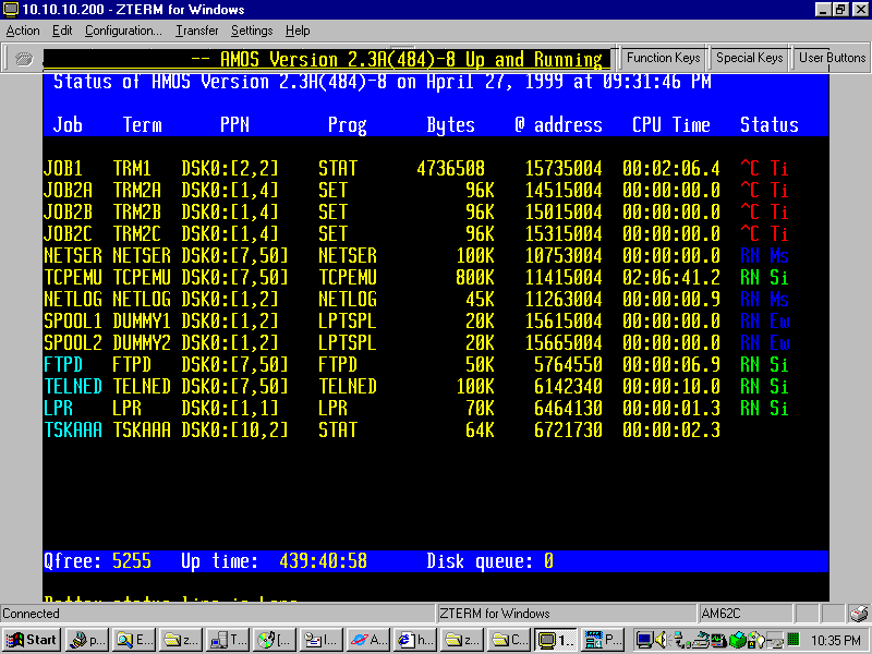 ZTERM 2000 is written for use with Alpha Micro AMOS machines. These machines are 680x0 multi-user systems that run a lightweight operating system. When this machine was introduced in 1977, it was the first multi-user micro on the market. Twenty years later, they're still making them with the advantage that most of the code written in 1977 and later years can still run today.